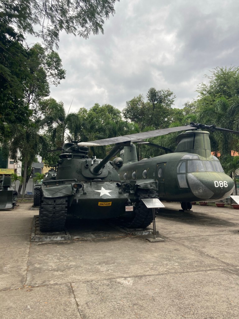 The museum identifies the key events leading to the war and the players, but then focuses on the horrors committed by the US – the My Lai massacre where US military killed 500 civilians for no apparent purpose, the Napalm attacks and the effects of Agent Orange. Two exhibits were devoted to photojournalism; one on the many journalists who lost their lives during the war and another showcasing their work. Finally, I returned to the courtyard which was decorated with US hardware; taking selfies beside a tank seemed to be a thing but I managed one picture without getting photo bombed.