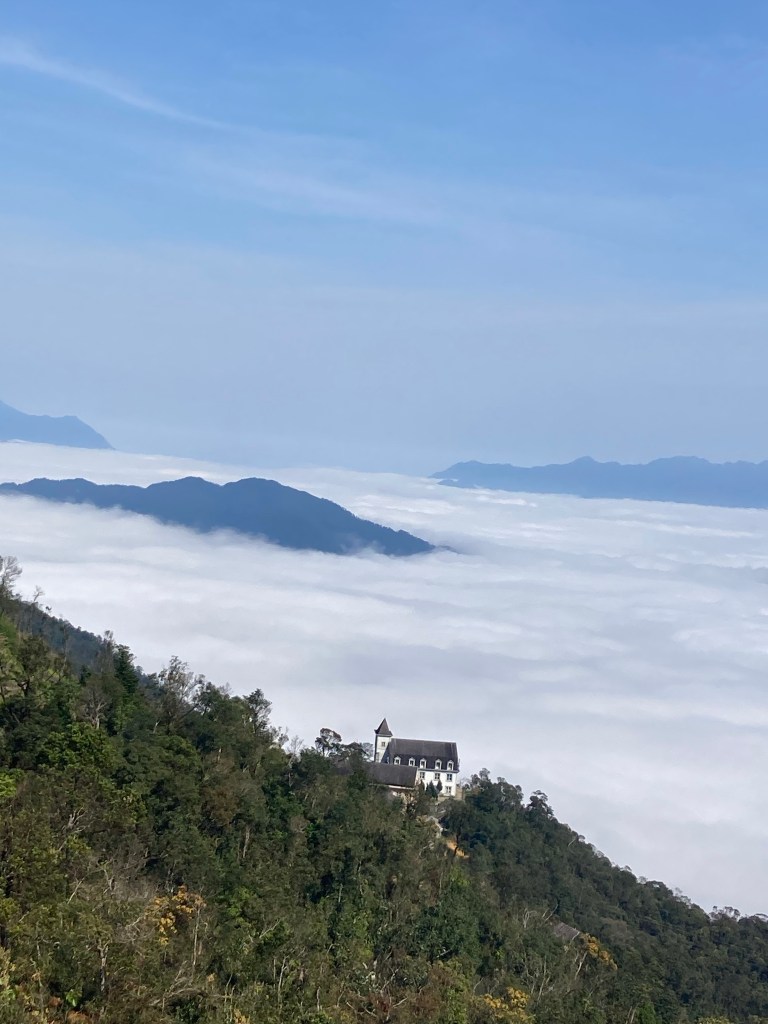 It’s very busy with both local and foreign visitors, a testament to the skills of the marketers. Despite the craziness of walking through a French village in Vietnam, the imagination of the Golden Bridge designers or the indoor theme park, my favourite part of the day was the cable car ride. Despite being basically terrified of cable cars, this one started in the misty plains, then went through the clouds before stopping in glorious sunshine. From atop, I was able to photograph the clouds below: