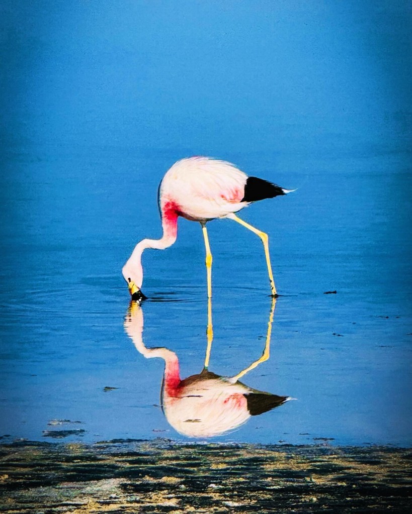 Flamingoes weren’t the only wildlife. Wild vacunas, a relative of the llama, would bounce alongside our vehicle: