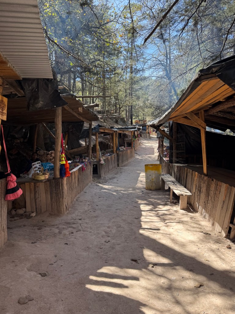 From the Mennonite Museum, we drove south through the Sierra Madre mountains towards a small Indian reservation, whose primary attraction is the pretty waterfall of Cascada de Cusarare. We walked the 500 m to the waterfall through a gauntlet of small stalls where the local indigenous tribal women were selling their handicrafts.